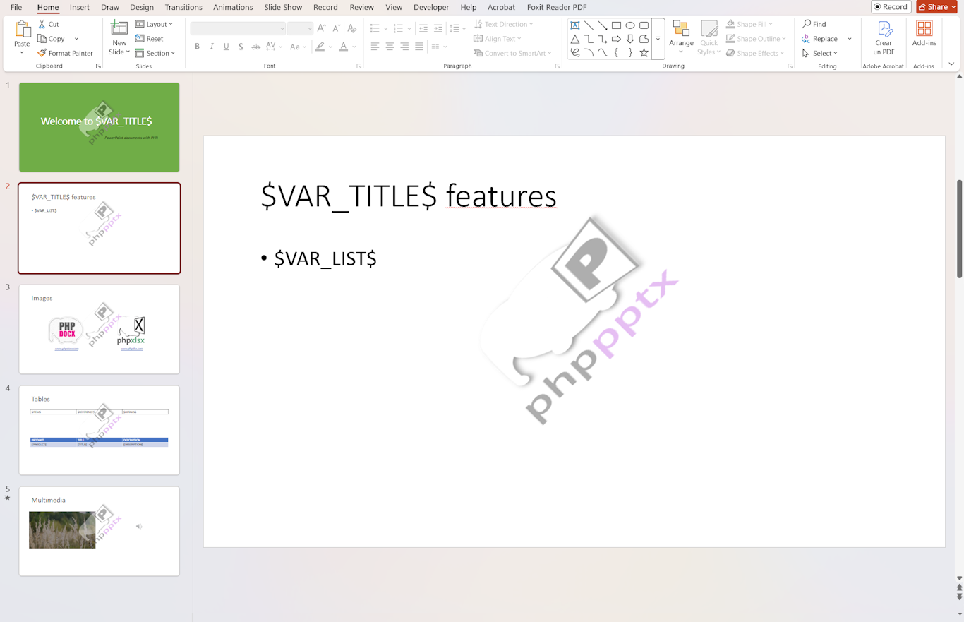 - phppptx 4.5: